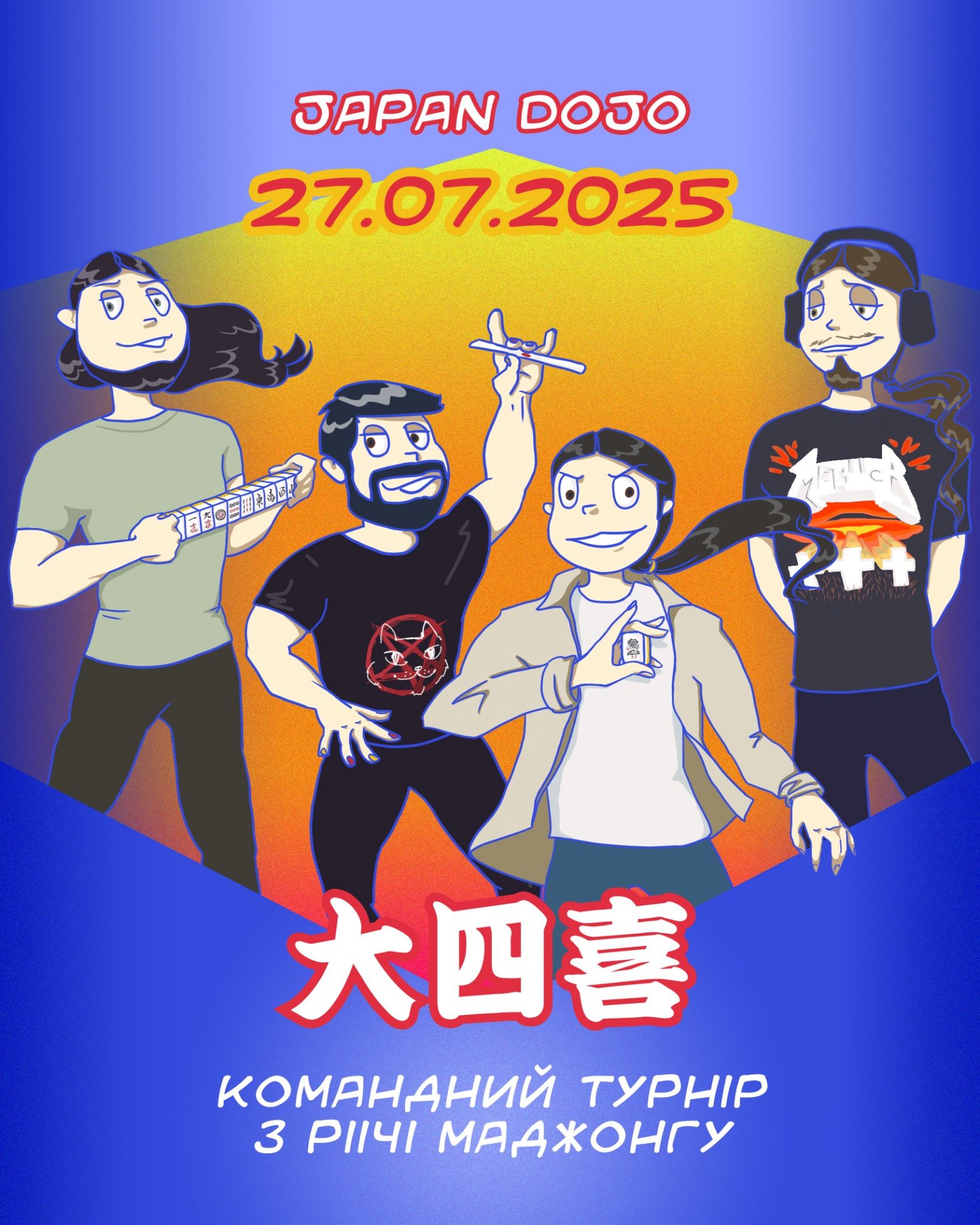 Любите грати в ріічі-маджонг але не любите бути на четвертому місці? Тоді в нас є турнір для вас! 6 грудня вперше в доджьо відбудеться турнір з санми — варіанту ріічі-маджонгу на трьох гравців. А для того щоб підкорювати нові маджонгорізонти було не так страшно, турнір буде командним! До 9 команд з трьох людей поборються за титул чемпіонів доджьо з найазартнішого варіанту маджонгу. Хапайте двох друзів і реєструйтесь командою чи реєструйтеся індивідуально або вдвох і ми знайдемо вам команду 🙏